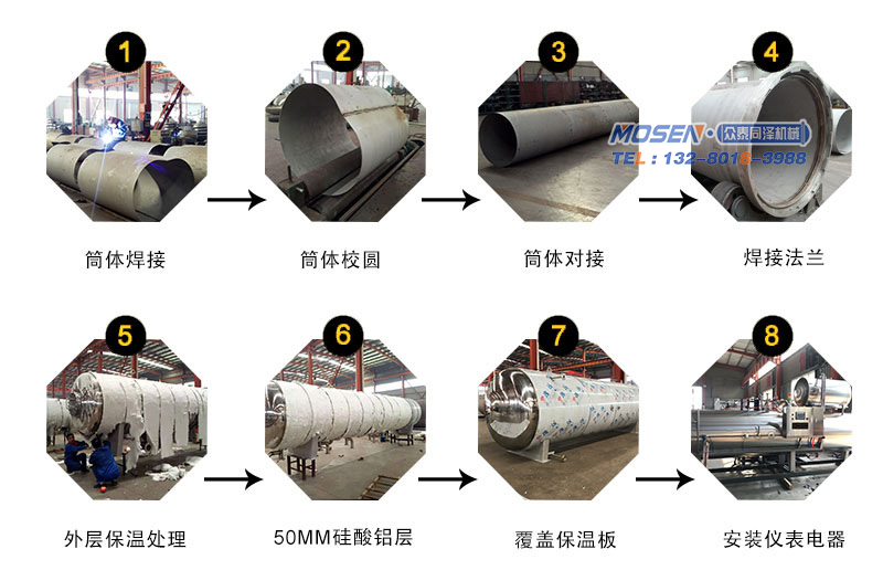 在殺菌軟化水不斷循環(huán)的同時,純凈蒸汽(蒸汽壓力0.4-0.6Mpa)直接給鍋內(nèi)的殺菌軟化水加熱