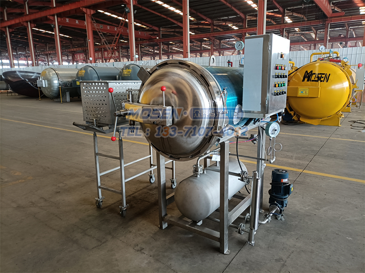 鍋體:包括鍋身、鍋蓋、彎臂、軌道、密封圈、滾輪、安全聯鎖裝置、蒸汽管、噴淋管、冷卻水管等。