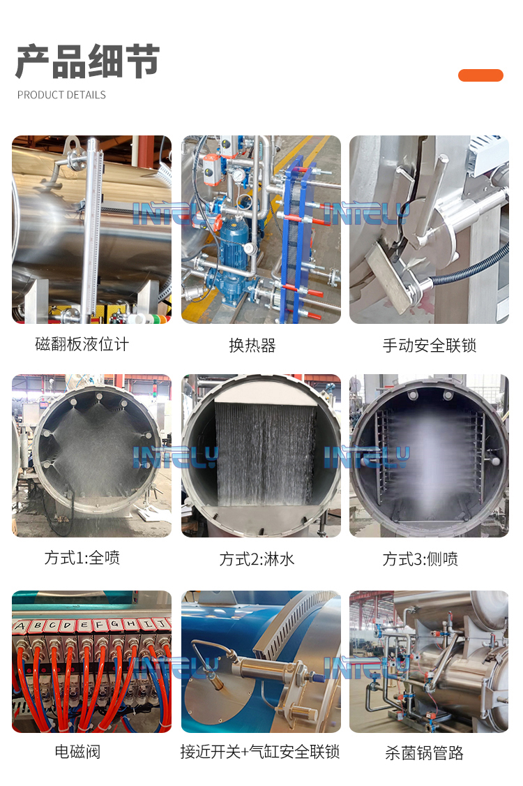 按殺菌方式分為:水浴式、蒸汽式、噴淋式(側噴、頂淋、全噴)。