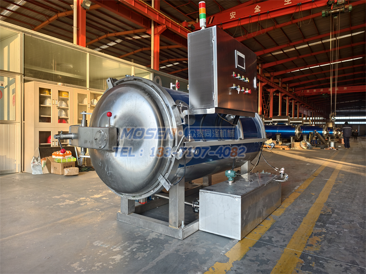 鍋體:包括鍋身、鍋蓋、彎臂、軌道、密封圈、滾輪、安全聯鎖裝置、蒸汽管、噴淋管、冷卻水管等。