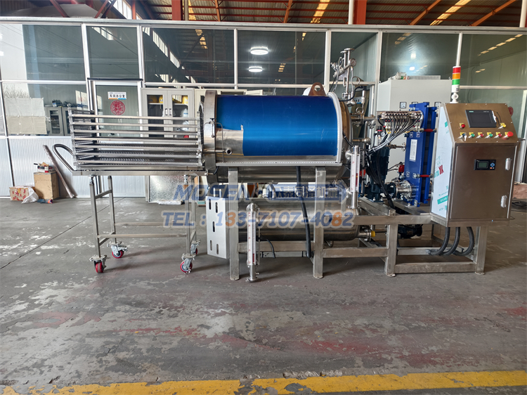 殺菌鍋設備主要用于肉制品、水果罐頭、奶制品、豆制品、農副產品、飲料制品、蛋制品、水產品、八寶粥、調味品、食用菌、寵物食品、湯和熟食以及果蔬等食品的殺菌。殺菌鍋由鍋體、鍋蓋、開啟裝置、鎖緊鍥塊、安全聯鎖裝置、軌道、殺菌盤、蒸汽噴管及若干管口、保溫層、熱水罐等組成。